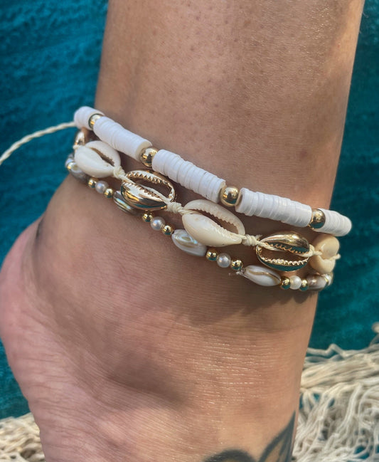 Seashell Shimmer 3-Piece Anklet Set